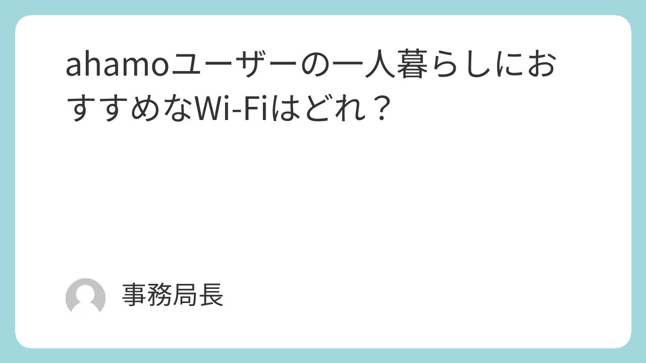 結論から言うと、一人暮らしのahamoユーザーにおすすめできるWi-Fiは用途により異なります。