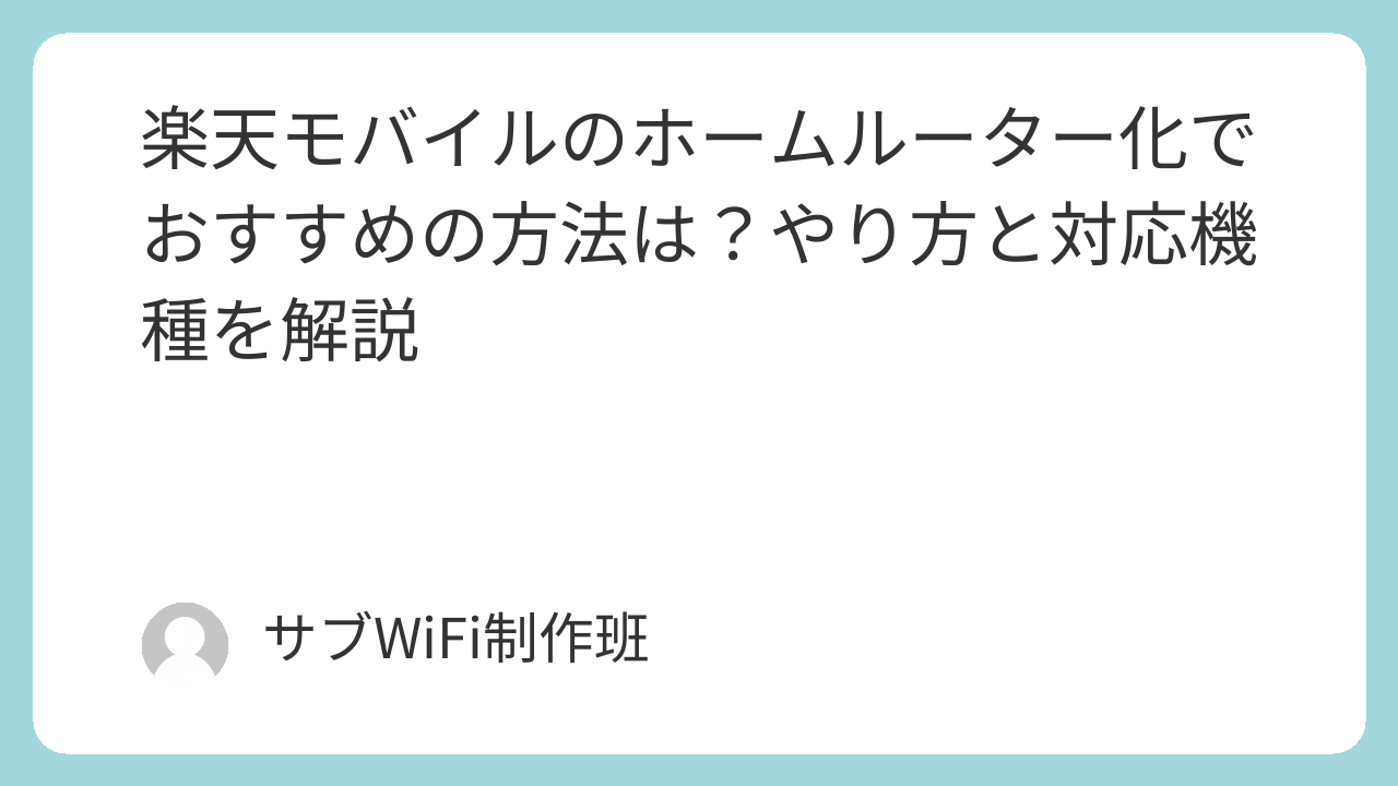 この記事では、楽天モバイルのホームルーター化でおすすめの方法や設定方法、対応機種、メリットや注意点までわかりやすく解説していきます。