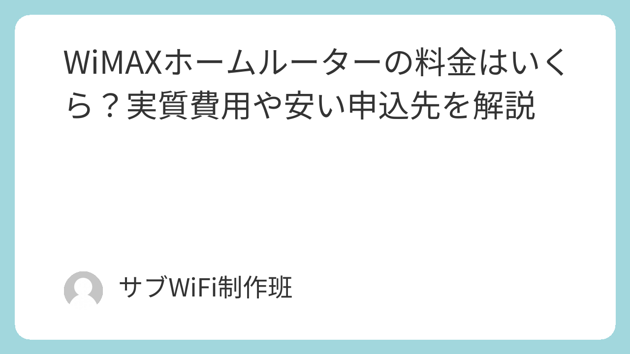 この記事では、WiMAXホームルーターの料金の内訳や実質費用の考え方、さらに安く申し込めるプロバイダについてわかりやすく解説していきます。